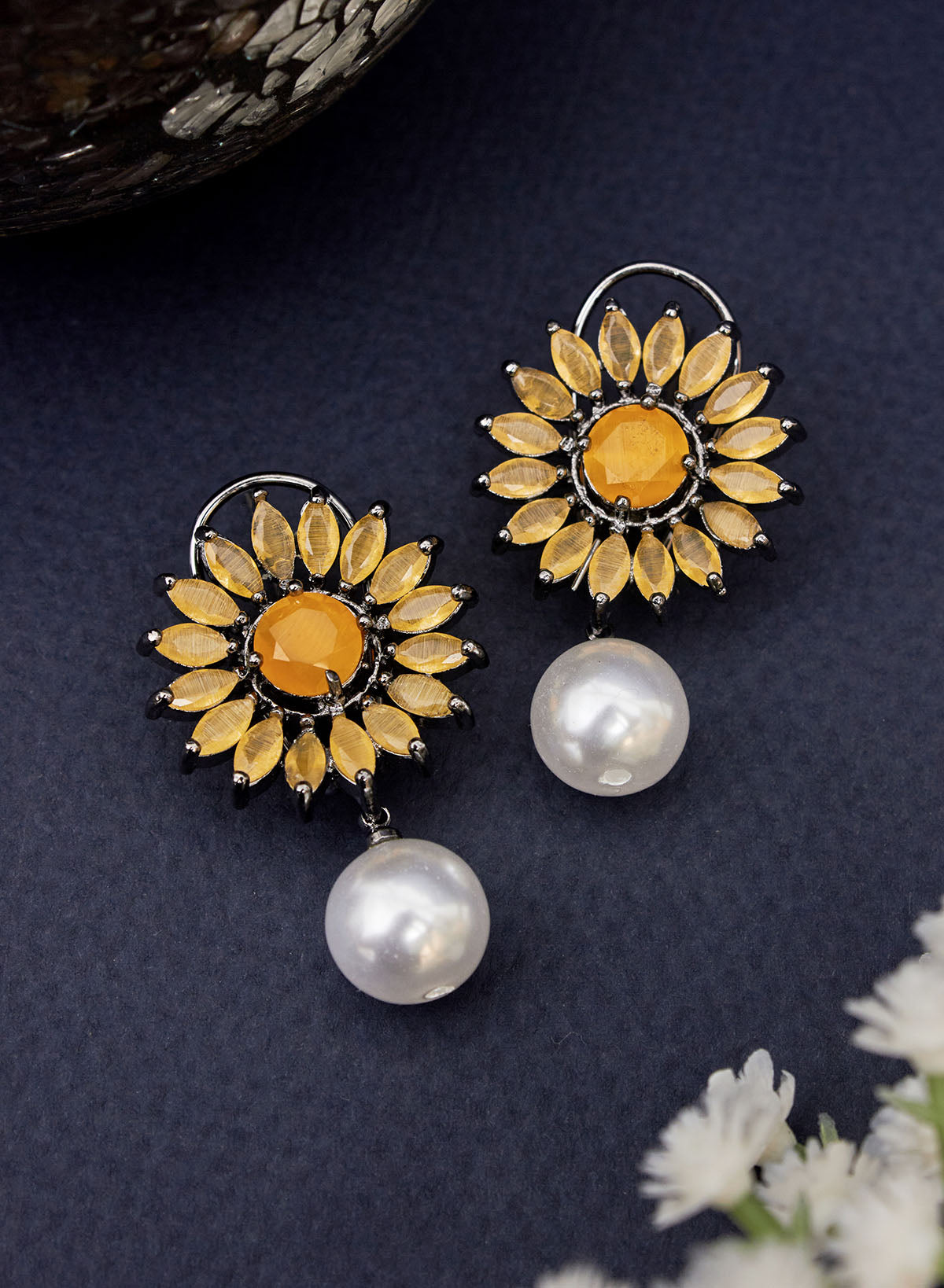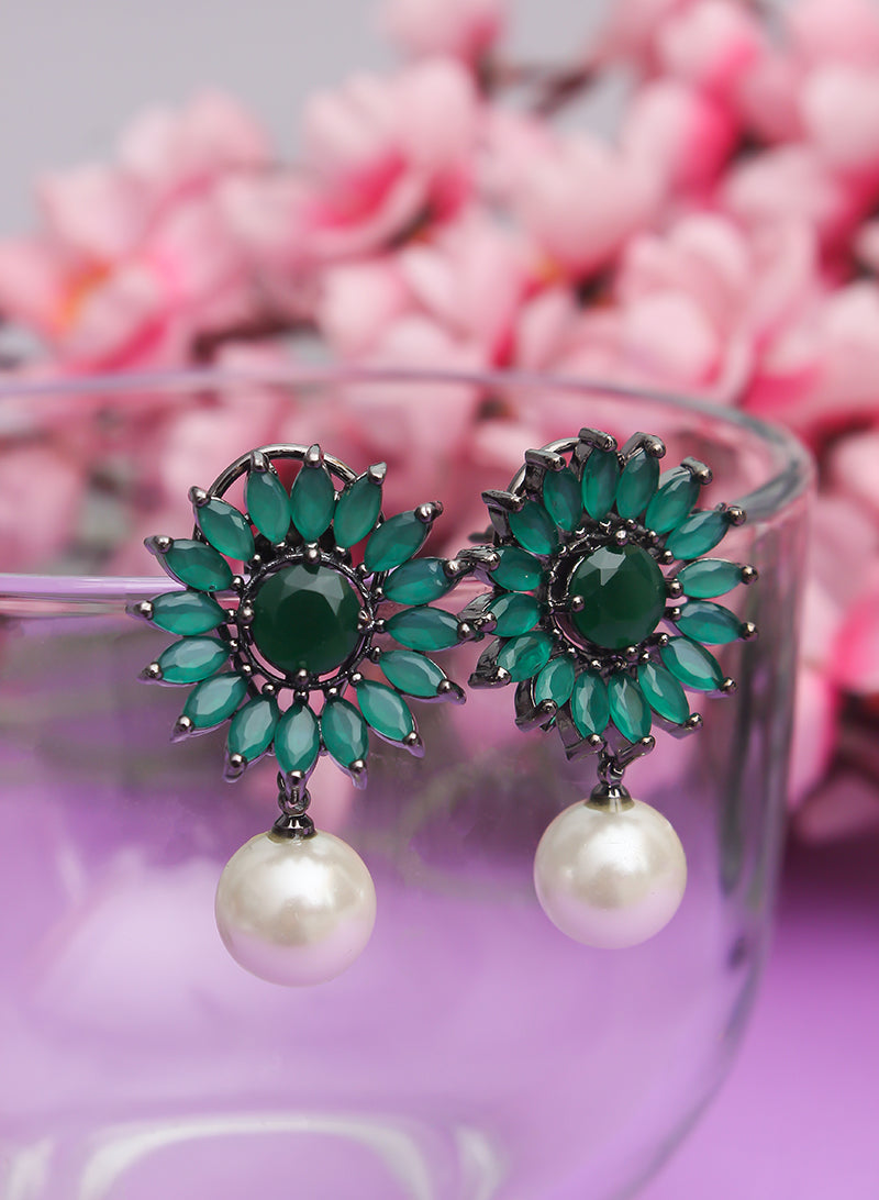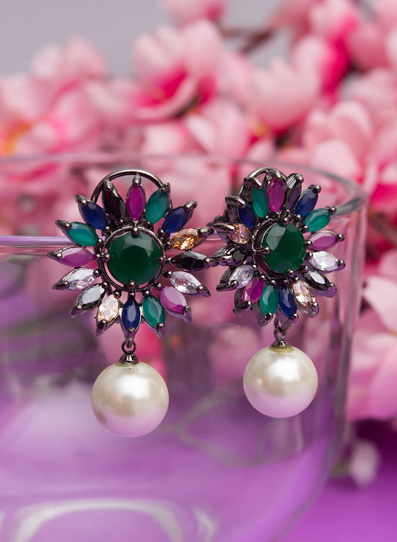 These stud earrings with contemporary design set in silver with white, yellow, blues, greens and pink american diamond will add elegance to your look. Pair up these american diamond earrings with dresses, gowns, sarees, lehengas and indo-western dresses and dazzle your way this wedding season.