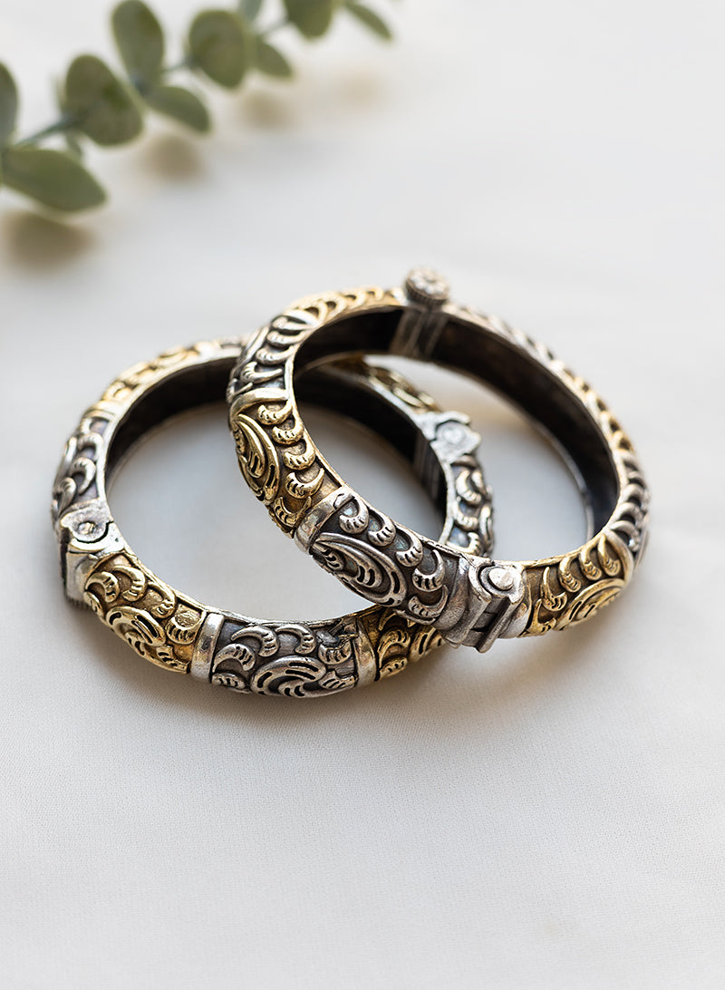 Occasion: Oxidised jewelry refers to pieces that have undergone a chemical process to darken the metal, typically silver, to give it an aged or antique appearance. Oxidised jewelry requires special care to maintain its appearance. it's recommended to store oxidised jewelry in a dry place away from direct sunlight and to avoid exposing it to harsh chemicals or abrasive materials when cleaning.Despite their vintage appearance, oxidised bracelets can be remarkably versatile. Styling oxidised bangles can add a unique, vintage, and sometimes bohemian touch to your outfit. Oxidised bangles look stunning with traditional Indian outfits like sarees, lehengas, and salwar kameez. Choose bangles with intricate designs to complement embroidered or embellished clothing.