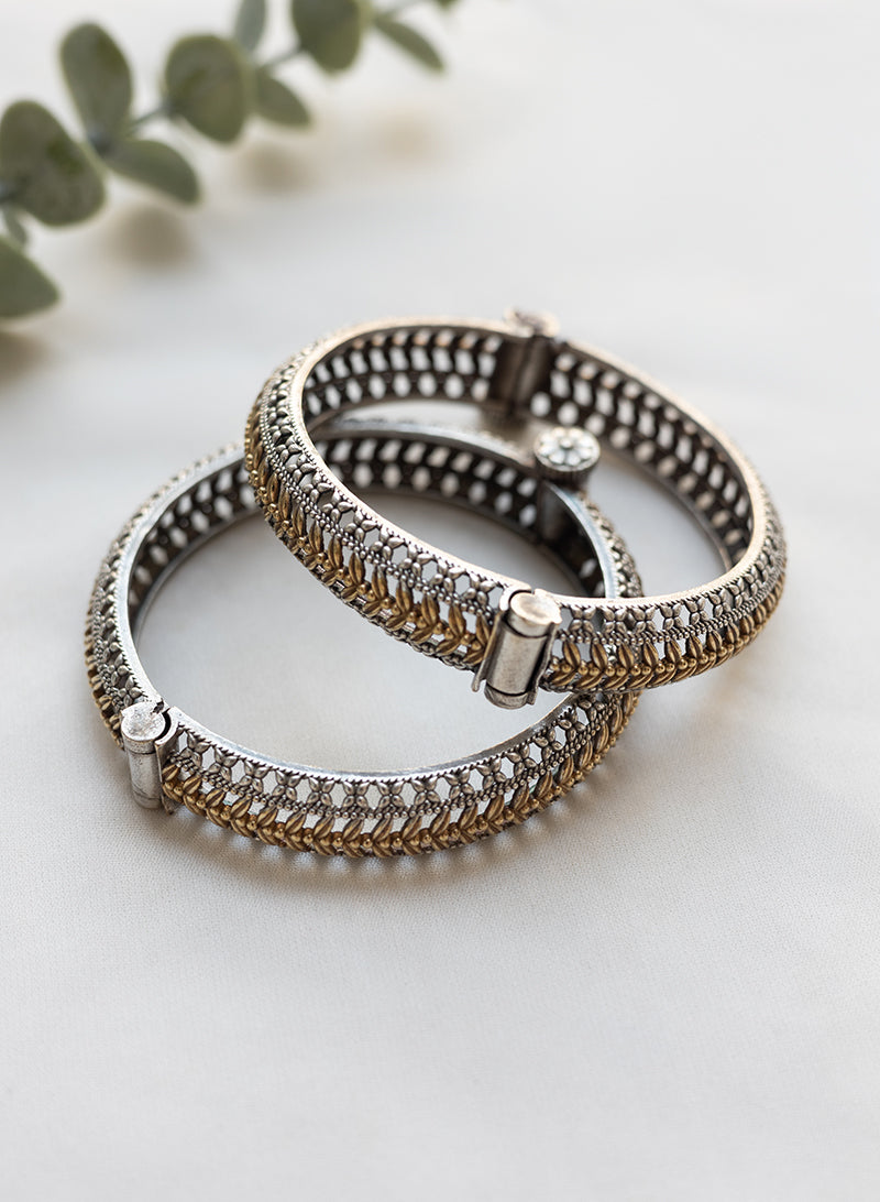 Occasion: Oxidised jewelry refers to pieces that have undergone a chemical process to darken the metal, typically silver, to give it an aged or antique appearance. Oxidised jewelry requires special care to maintain its appearance. it's recommended to store oxidised jewelry in a dry place away from direct sunlight and to avoid exposing it to harsh chemicals or abrasive materials when cleaning.Despite their vintage appearance, oxidised bracelets can be remarkably versatile. Styling oxidised bangles can add a unique, vintage, and sometimes bohemian touch to your outfit. Oxidised bangles look stunning with traditional Indian outfits like sarees, lehengas, and salwar kameez. Choose bangles with intricate designs to complement embroidered or embellished clothing.
