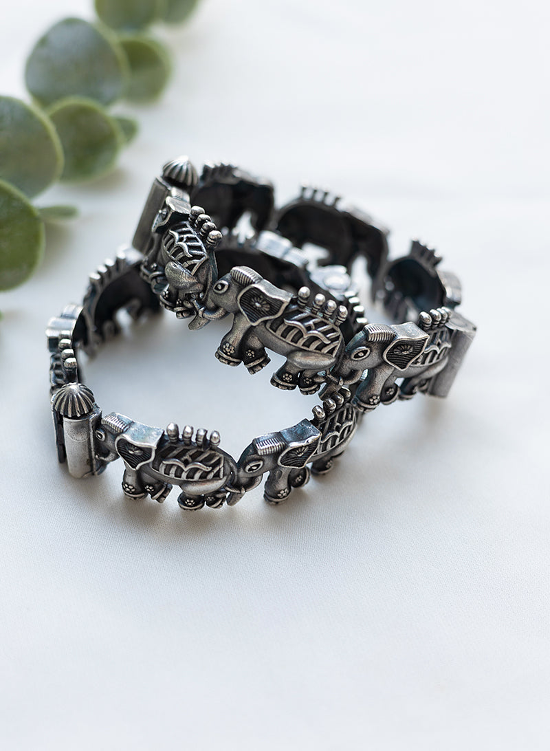 Occasion: Oxidised jewelry refers to pieces that have undergone a chemical process to darken the metal, typically silver, to give it an aged or antique appearance. Oxidised jewelry requires special care to maintain its appearance. it's recommended to store oxidised jewelry in a dry place away from direct sunlight and to avoid exposing it to harsh chemicals or abrasive materials when cleaning.Despite their vintage appearance, oxidised bracelets can be remarkably versatile. Styling oxidised bangles can add a unique, vintage, and sometimes bohemian touch to your outfit. Oxidised bangles look stunning with traditional Indian outfits like sarees, lehengas, and salwar kameez. Choose bangles with intricate designs to complement embroidered or embellished clothing.