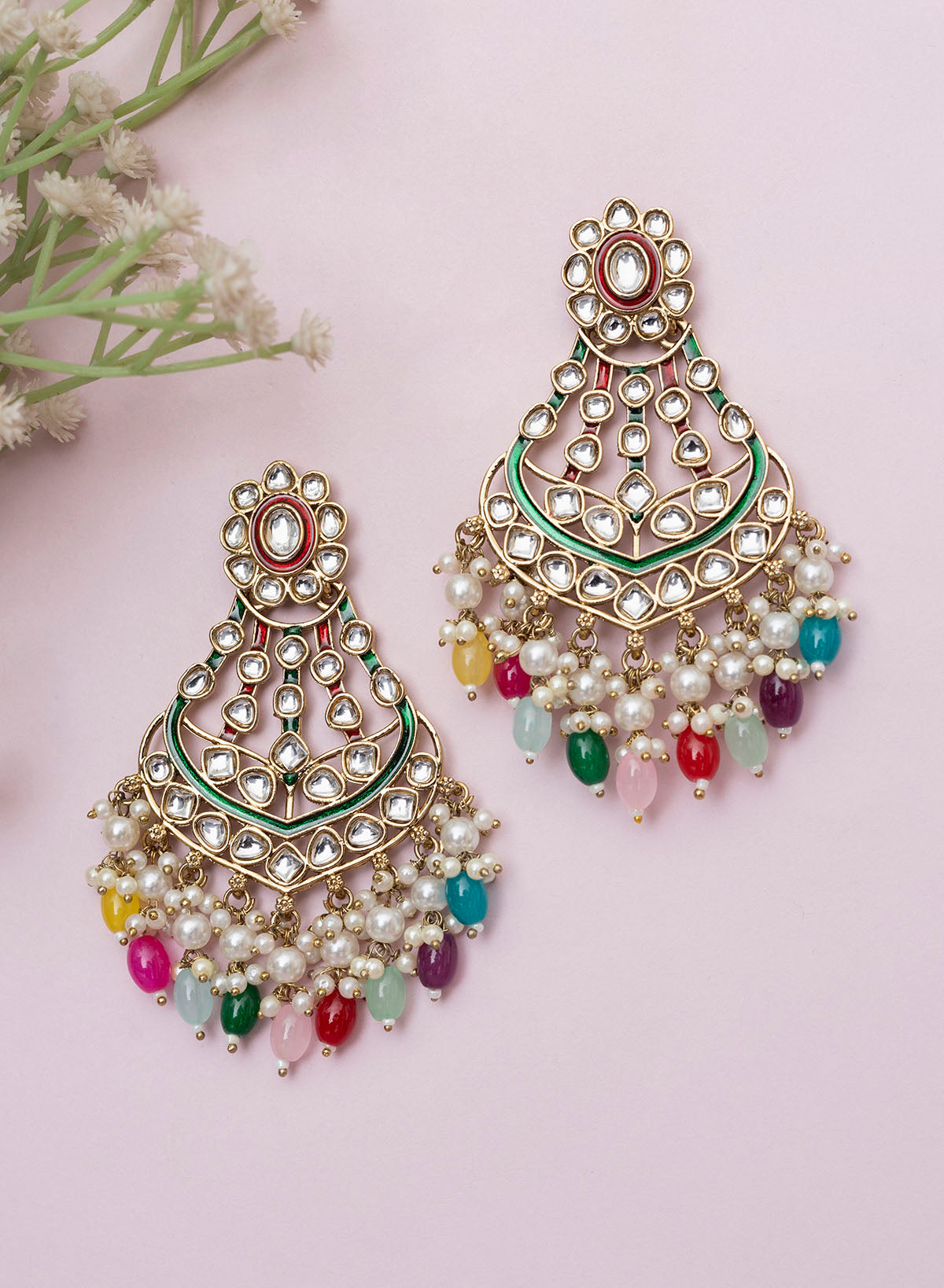 Occasion: Ethnic earrings come in a variety of styles and designs, but they are typically inspired by traditional jewellery from different cultures around the world. Some popular styles of ethnic earrings includes long earrings with kundan work can add grace to your outfit this wedding occasions. These are perfect to wear on mehendi, sangeet, marriage,diwali