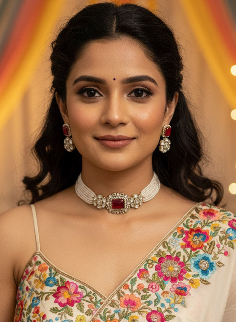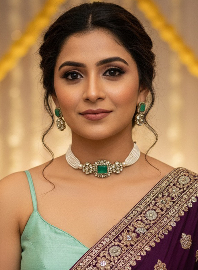 The design sits beautifully on the neckline, making it ideal to pair with lehengas, sarees, anarkalis, and fusion outfits. Its versatility allows you to wear it as a bridal piece or as a standout accessory for festive occasions like Diwali, Navratri, Eid, and family functions. The adjustable closure ensures a comfortable and secure fit for all-day wear.