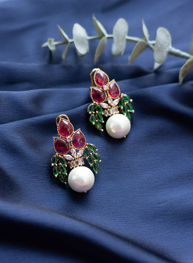 Made with high-quality metal and studded with brilliant American Diamonds, these earrings give you a rich and classy look at an affordable price. The diamonds are cut in a way that they catch the light beautifully, adding a graceful shine to your ears.