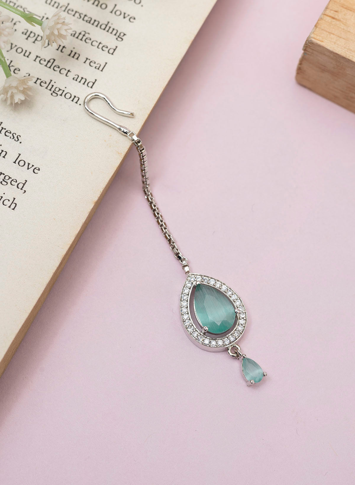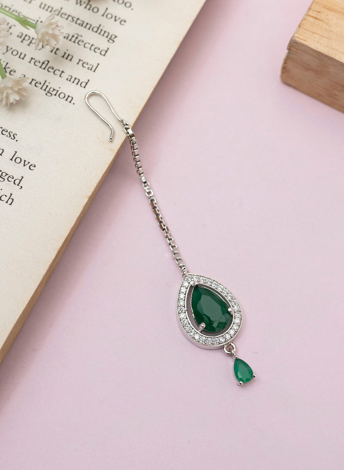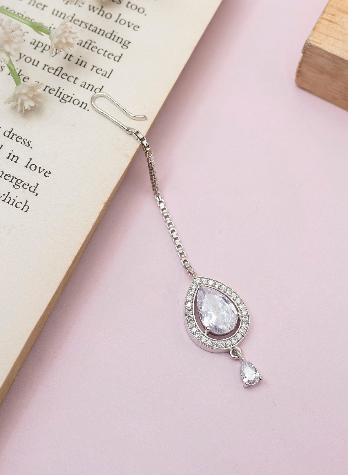 Occasion: Take your ethnic look up a notch with these chic and classy maangtika in silver plating with white american diamonds. Pair them with american diamond earrings and chokers and make heads turn this wedding season.