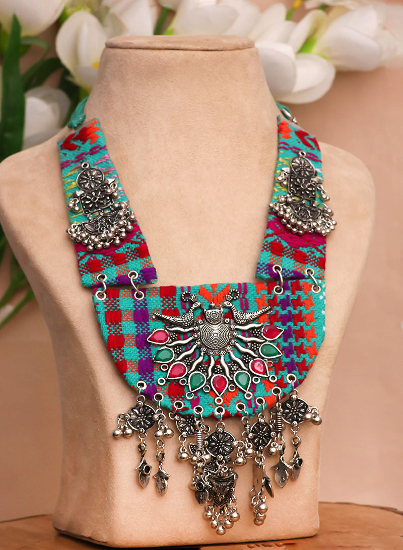Occasion: Create that perfect boho look with these trendy necklaces. This oxidised fabric necklace with stones is perfect to style with casuals, ethnic dresses and indo-western dresses.