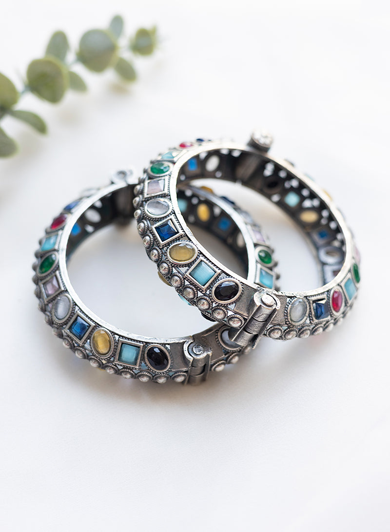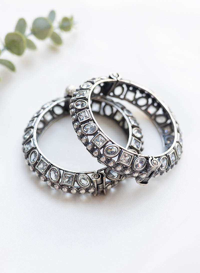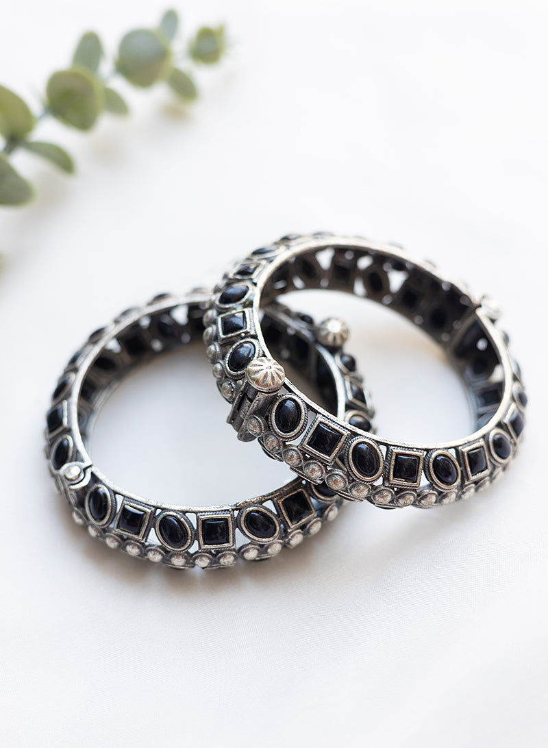 Occasion: Oxidised jewelry refers to pieces that have undergone a chemical process to darken the metal, typically silver, to give it an aged or antique appearance. Oxidised jewelry requires special care to maintain its appearance. it's recommended to store oxidised jewelry in a dry place away from direct sunlight and to avoid exposing it to harsh chemicals or abrasive materials when cleaning.Despite their vintage appearance, oxidised bracelets can be remarkably versatile. Styling oxidised bangles can add a unique, vintage, and sometimes bohemian touch to your outfit. Oxidised bangles look stunning with traditional Indian outfits like sarees, lehengas, and salwar kameez. Choose bangles with intricate designs to complement embroidered or embellished clothing.