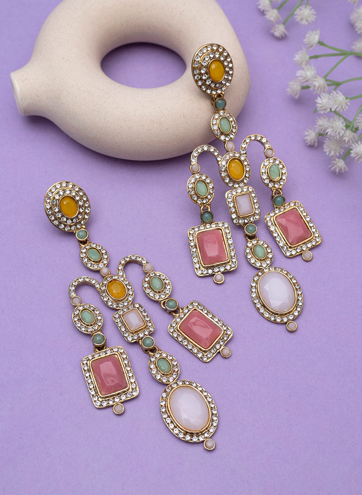 Occasion: Ethnic earrings come in a variety of styles and designs, but they are typically inspired by traditional jewellery from different cultures around the world. Some popular styles of ethnic earrings includes jhumka earrings with meenakari work can add grace to your outfit this wedding occasions. These are perfect to wear on mehendi, sangeet, marriage,diwali.