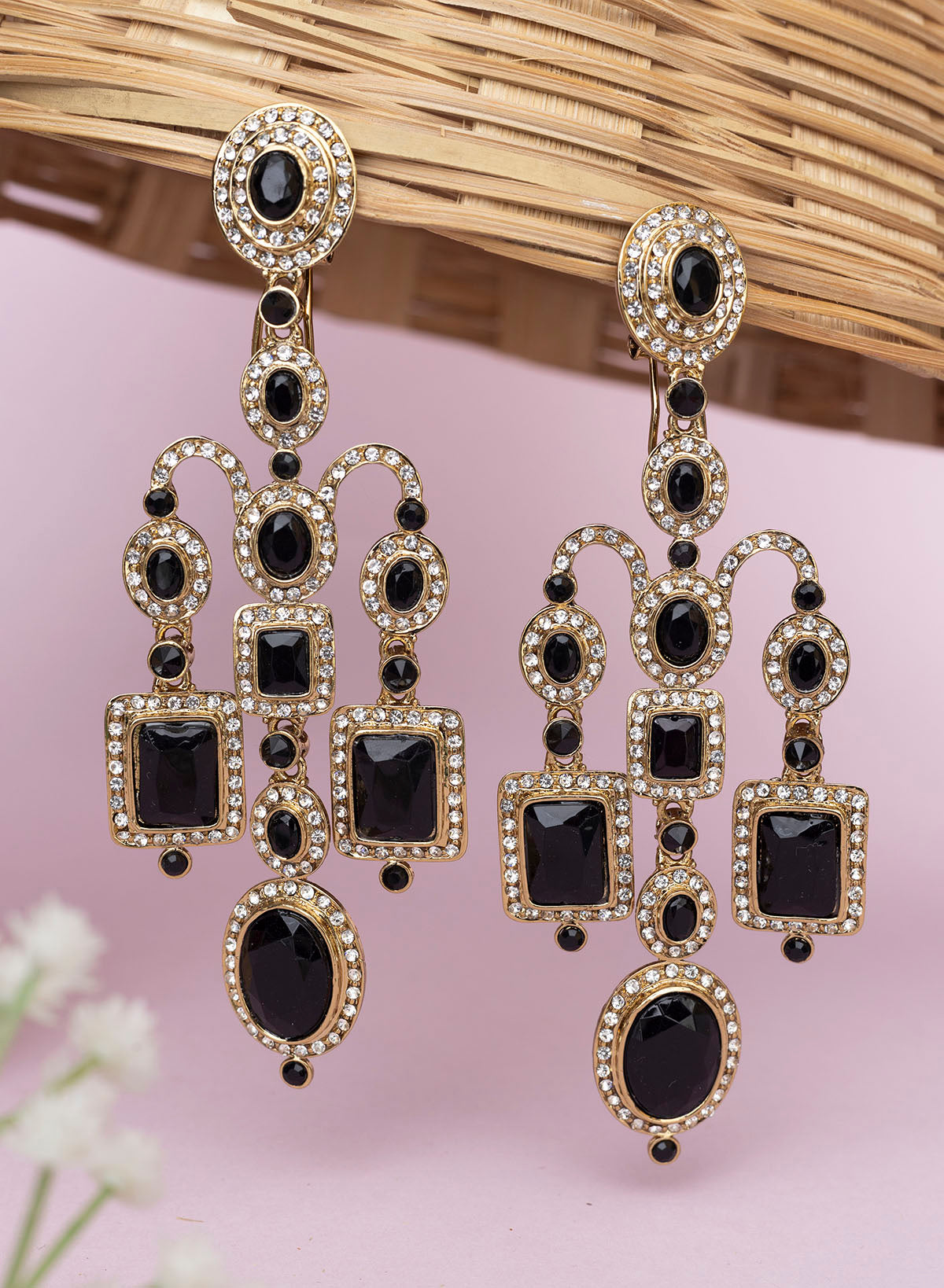 -You can wear these long statement earring on black printed saree on diwali or wedding reception