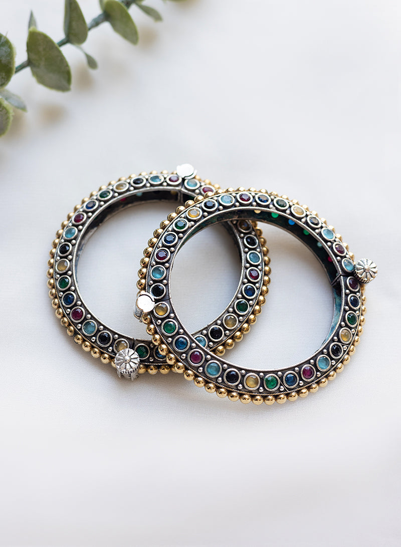 Occasion: Oxidised jewelry refers to pieces that have undergone a chemical process to darken the metal, typically silver, to give it an aged or antique appearance. Oxidised jewelry requires special care to maintain its appearance. it's recommended to store oxidised jewelry in a dry place away from direct sunlight and to avoid exposing it to harsh chemicals or abrasive materials when cleaning.Despite their vintage appearance, oxidised bracelets can be remarkably versatile. Styling oxidised bangles can add a unique, vintage, and sometimes bohemian touch to your outfit. Oxidised bangles look stunning with traditional Indian outfits like sarees, lehengas, and salwar kameez. Choose bangles with intricate designs to complement embroidered or embellished clothing.