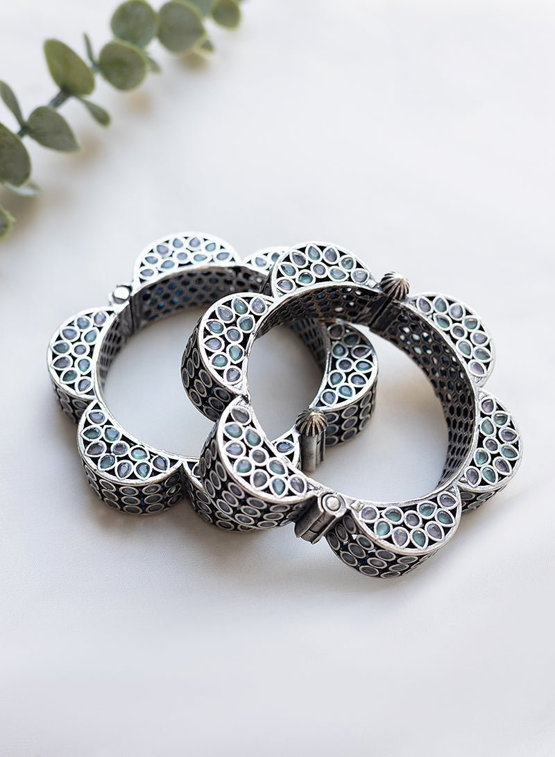 Occasion: Oxidised jewelry refers to pieces that have undergone a chemical process to darken the metal, typically silver, to give it an aged or antique appearance. Oxidised jewelry requires special care to maintain its appearance. it's recommended to store oxidised jewelry in a dry place away from direct sunlight and to avoid exposing it to harsh chemicals or abrasive materials when cleaning.Despite their vintage appearance, oxidised bracelets can be remarkably versatile. Styling oxidised bangles can add a unique, vintage, and sometimes bohemian touch to your outfit. Oxidised bangles look stunning with traditional Indian outfits like sarees, lehengas, and salwar kameez. Choose bangles with intricate designs to complement embroidered or embellished clothing.