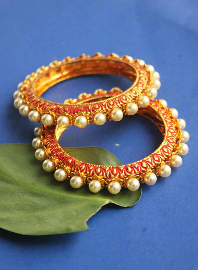 Occasion: Artificial bangles are a type of jewellery that are made of metal. They are designed to look like traditional bangles, which are typically made from metal with stones, but are more affordable and accessible. Artificial bangles come in a wide range of colours, designs and sizes, making them a popular choice for everyday wear as well as special occasions. They can be worn alone or stacked with other bangles on wedding occasion like marriage, sangeet, haldi, engagement and festivals like karwachauth, diwali, rakhi.