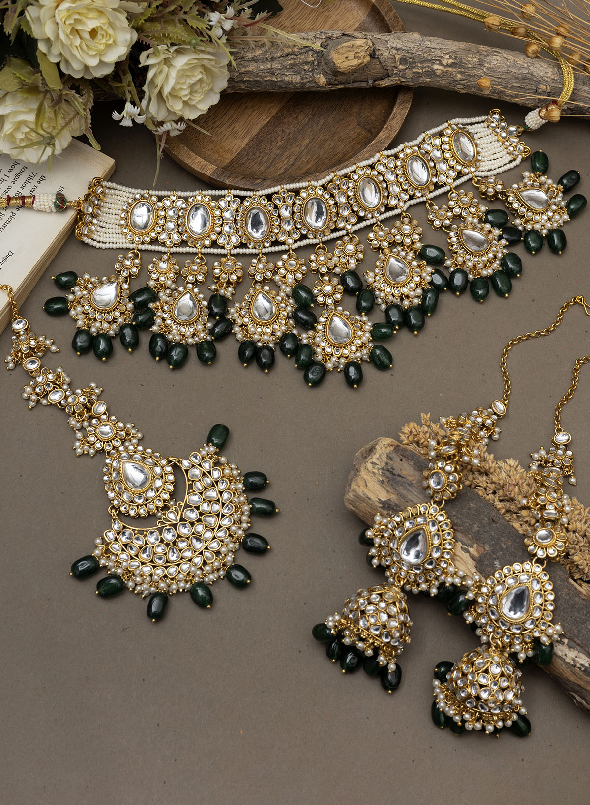 | Measurements | Necklace Length-11.5cm Necklace Width-22.5cm Earring Length-10cm Earring width-3cm maangtika-21cm |