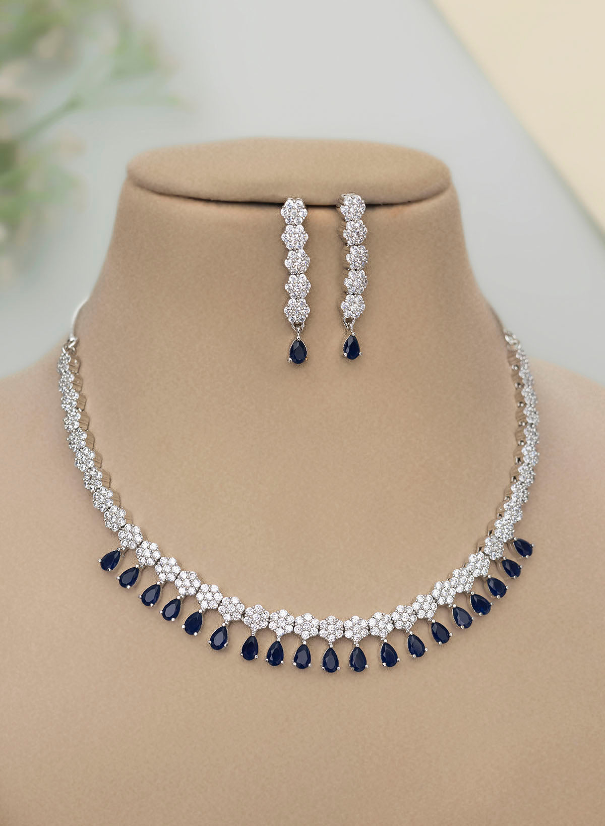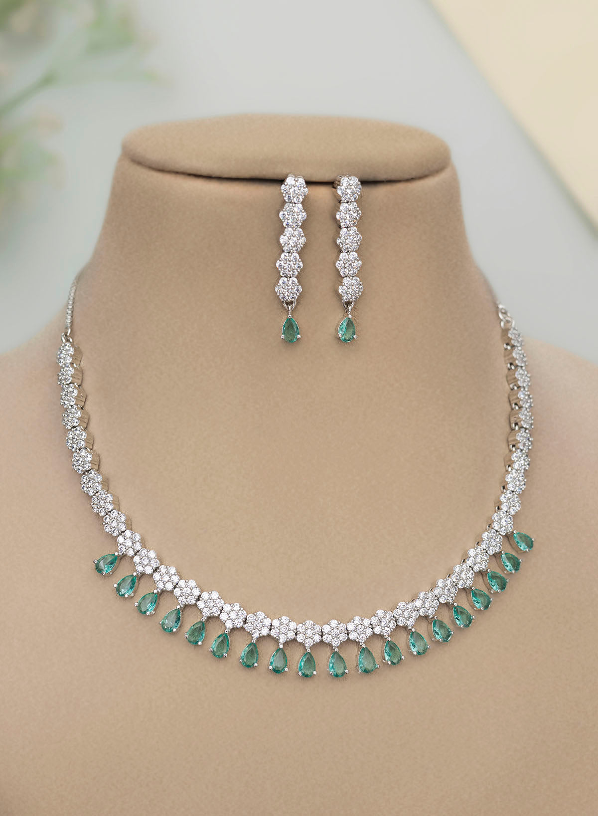 Occasion: An American diamond necklace set is a popular jewelry choice that mimics the appearance of real diamonds but is made from high-quality cubic zirconia or similar stones. These sets often feature intricate designs and can be quite elegant, making them a favored option for formal events or everyday wear.Styling an American diamond set can be a fun way to enhance your overall look for various occasions.These necklace set will elevate your look on this wedding occasion, sangeet , marriage ,engagement, puja.