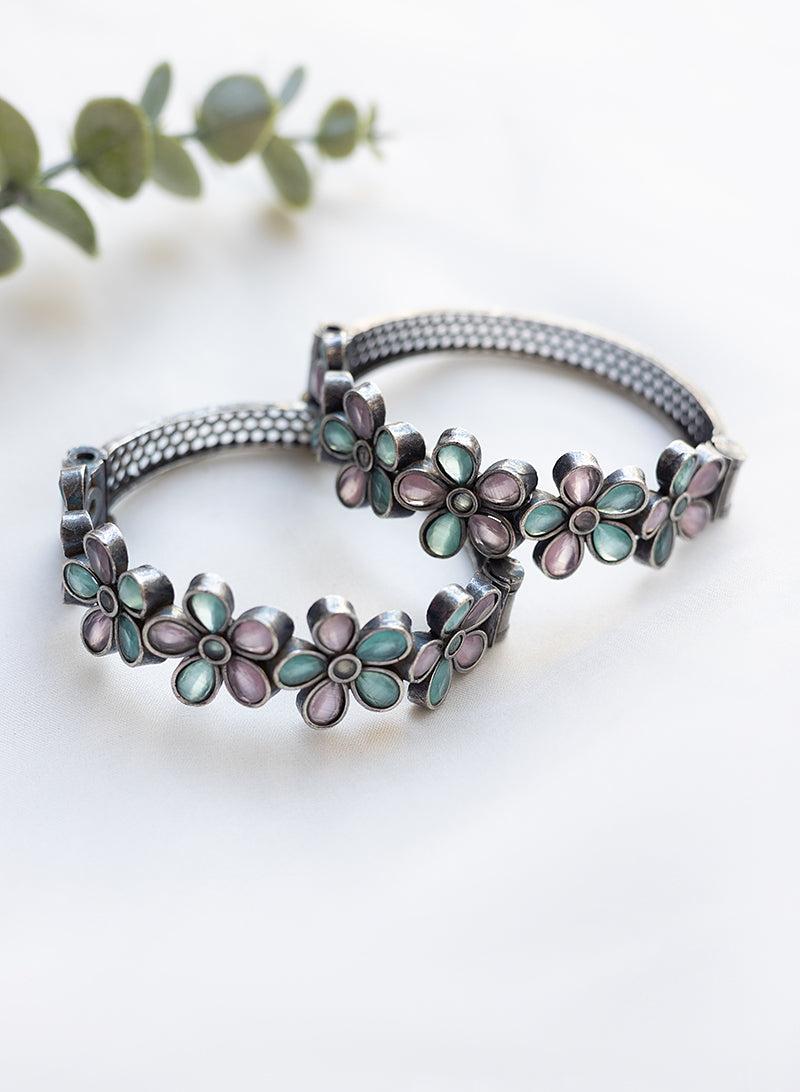 Occasion: Oxidised jewelry refers to pieces that have undergone a chemical process to darken the metal, typically silver, to give it an aged or antique appearance. Oxidised jewelry requires special care to maintain its appearance. it's recommended to store oxidised jewelry in a dry place away from direct sunlight and to avoid exposing it to harsh chemicals or abrasive materials when cleaning.Despite their vintage appearance, oxidised bracelets can be remarkably versatile. Styling oxidised bangles can add a unique, vintage, and sometimes bohemian touch to your outfit. Oxidised bangles look stunning with traditional Indian outfits like sarees, lehengas, and salwar kameez. Choose bangles with intricate designs to complement embroidered or embellished clothing.