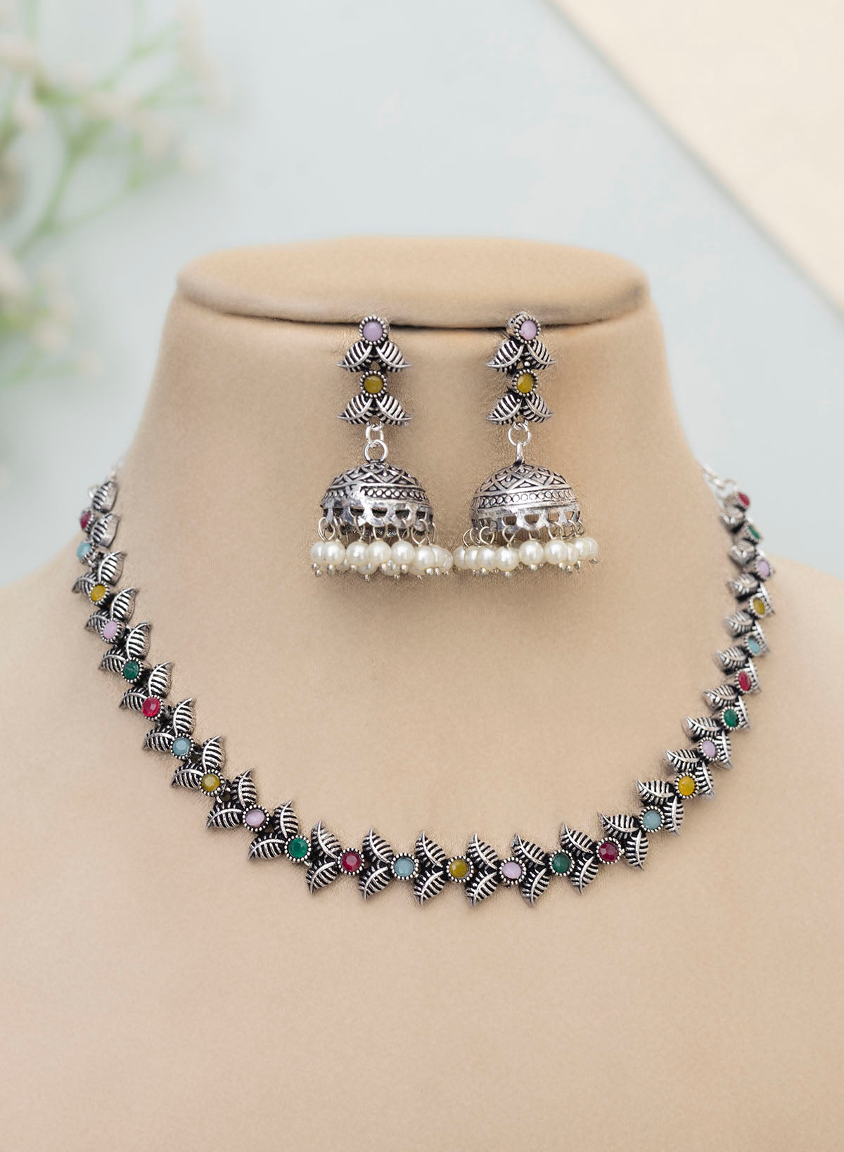 Occasion: These elegant german silver chokers in pastel and indian colors adds oomph to your casual wear and also matches the Indian wear. these are handcrafted in german silver with an oxidised silver plating is perfect for this wedding season.
