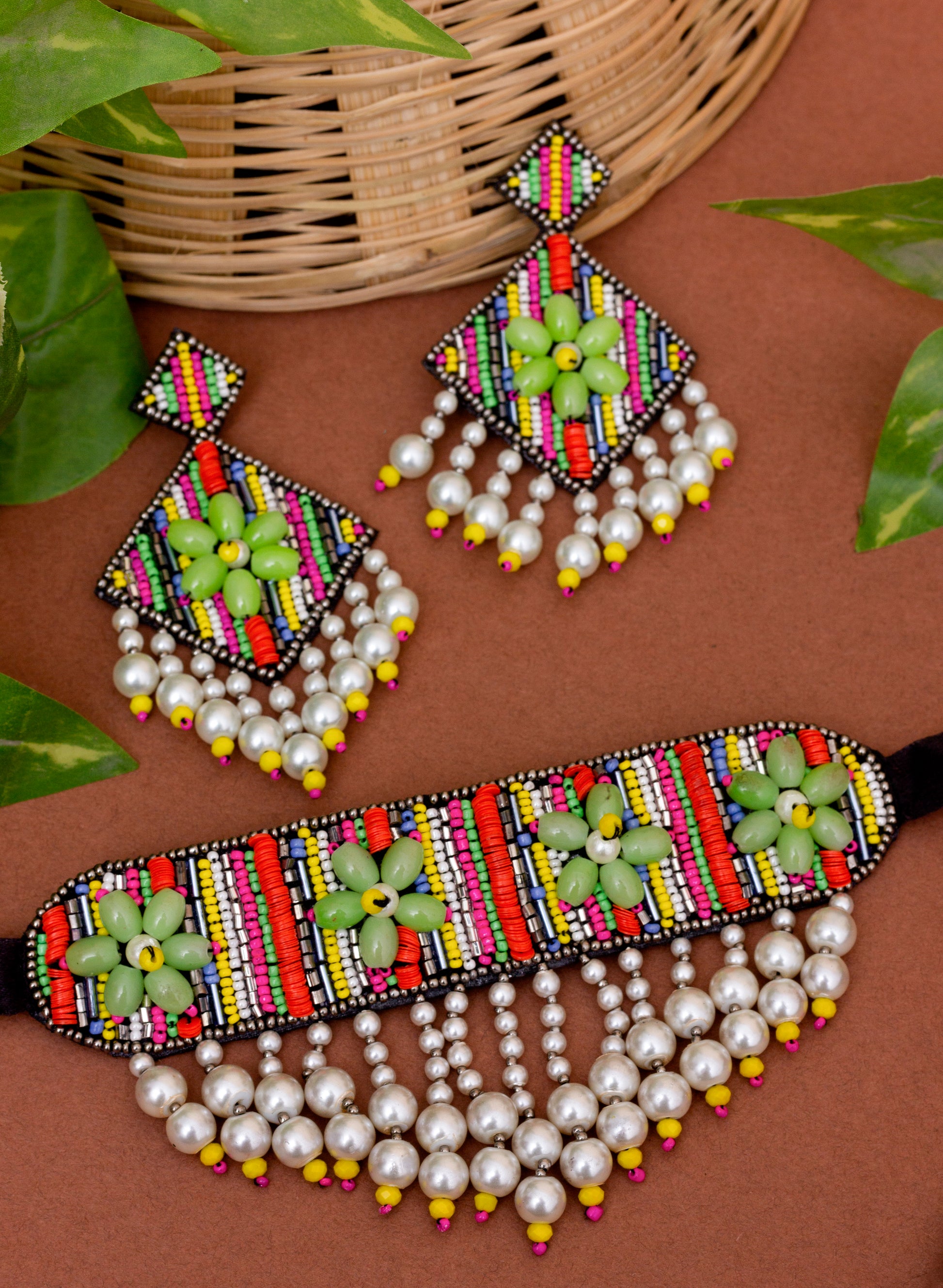 Occasion: Jazz up your special days by making these beautiful handmade a part of it. This handmade choker necklace set is made using materials like beads, moti, zari and thread which is going to be a perfect match for the upcoming occassions and wedding ceremonies. This handmade choker necklace set can be styled with all ethnic and indo western dresses.