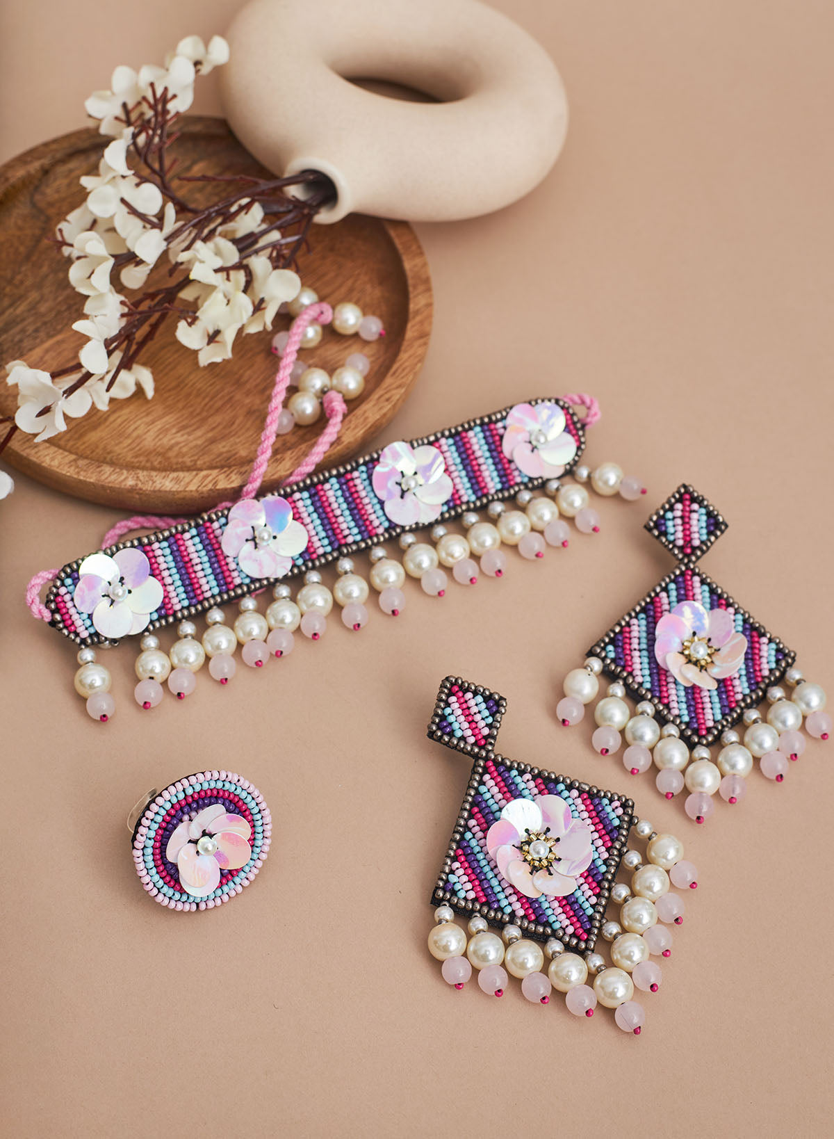 Occasion: Steal your special occasion creatively with our handmade necklace sets which are hand crafted having fine details using sequins, beads, resham thread. These aesthetically appealing sets can be worn on your mehendi and haldi or any wedding or lunch dates too...