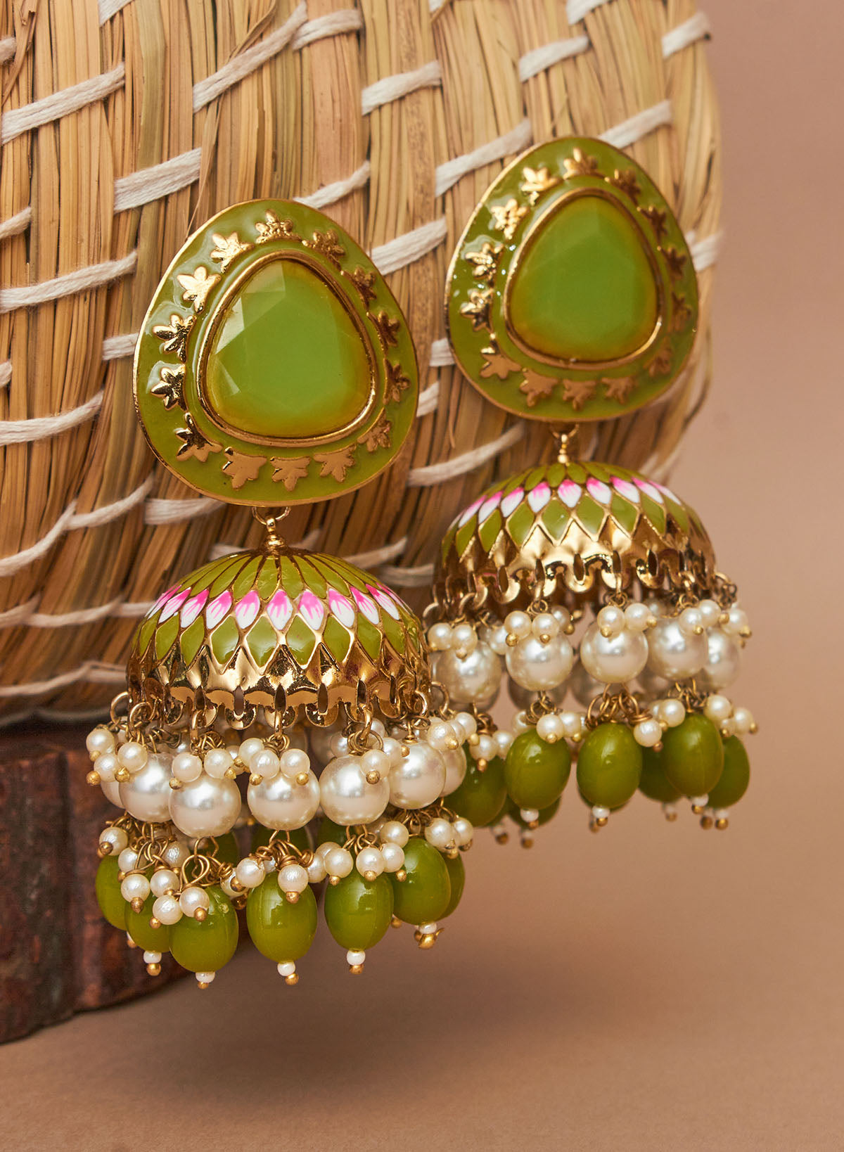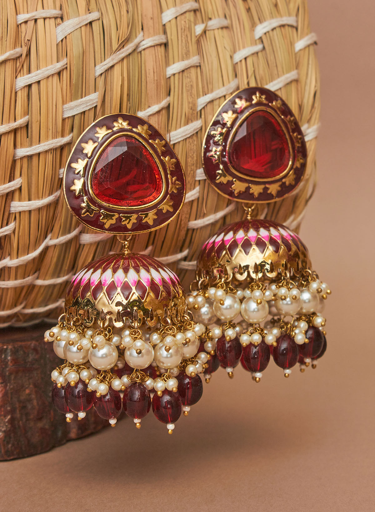Occasion: fit to lit in some desi style with these head turning collection of embellished earrings. These earrings are decorated with beads, meena and stones and can be coordially paired up with all semi formals, ethnics and indo westerns.
