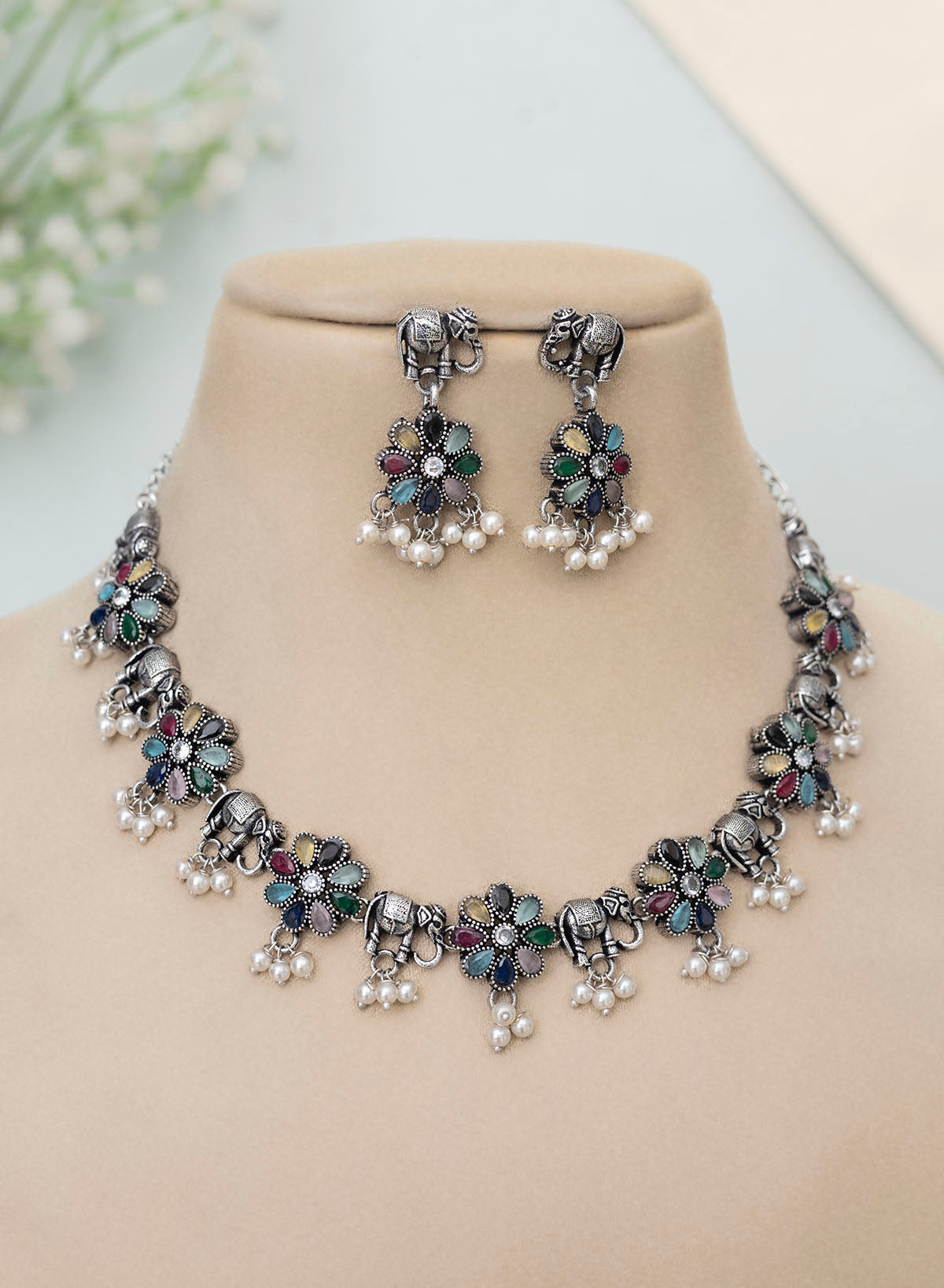 Occasion: Oxidised jewelry refers to pieces that have undergone a chemical process to darken the metal, typically silver, to give it an aged or antique appearance. Oxidised jewelry requires special care to maintain its appearance. it's recommended to store oxidised jewelry in a dry place away from direct sunlight and to avoid exposing it to harsh chemicals or abrasive materials when cleaning.Despite their vintage appearance, oxidised earrings can be remarkably versatile. They can complement a wide range of styles, from bohemian and casual to formal and ethnic, making them suitable for various occasions.