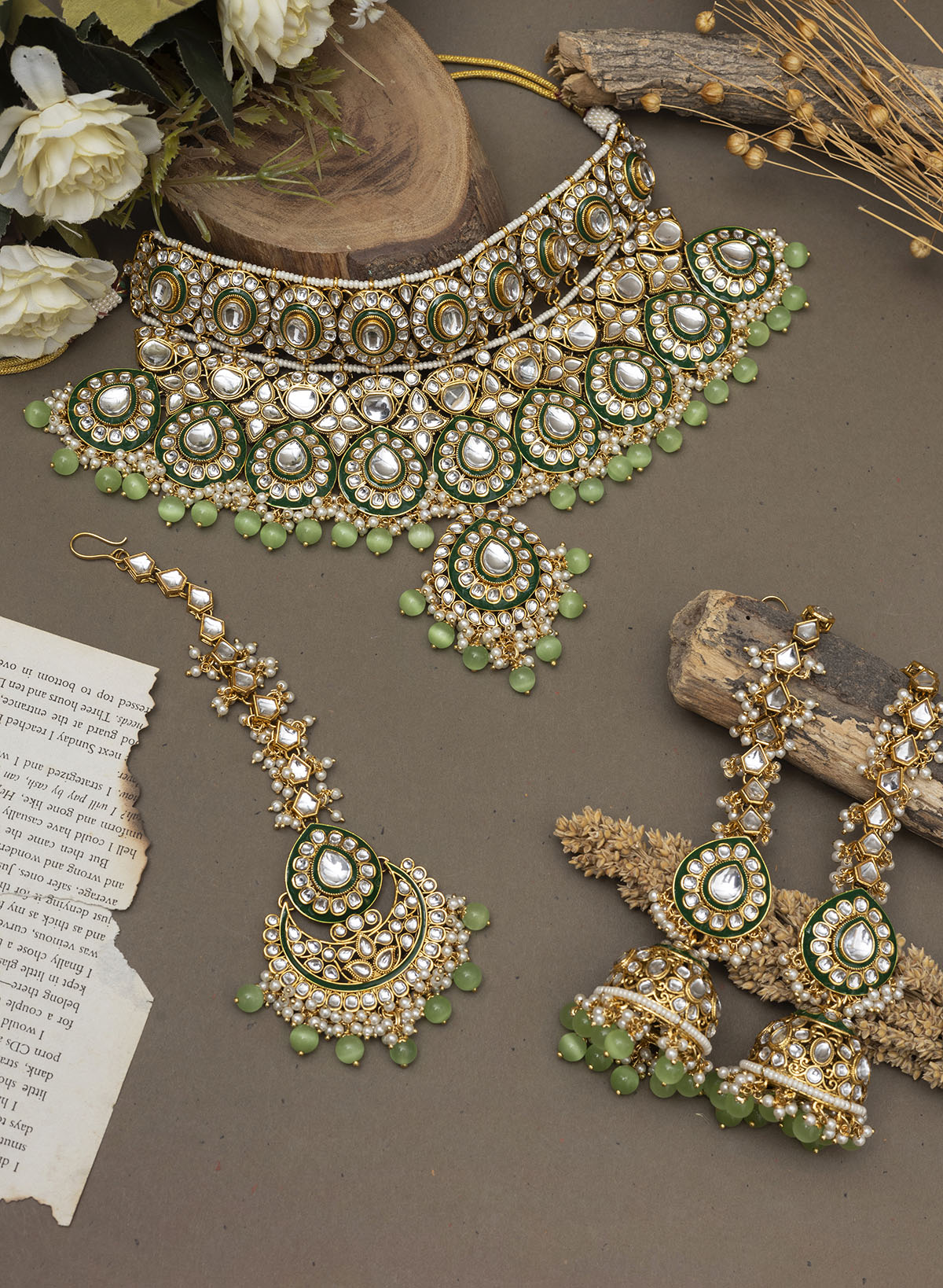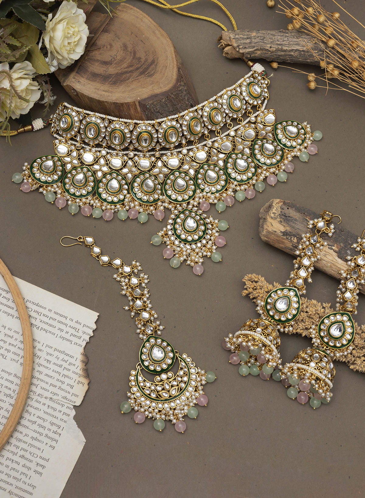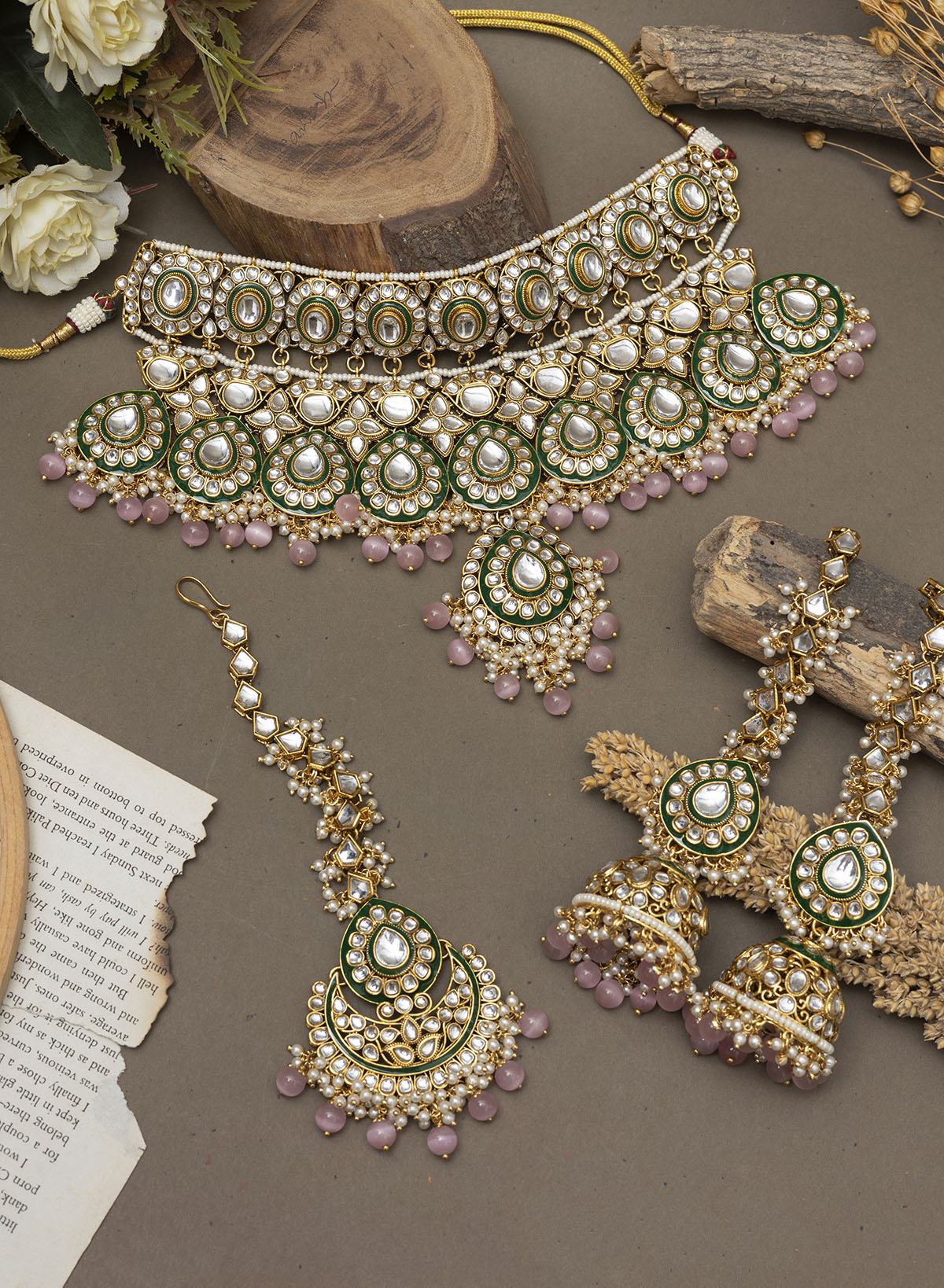 Occasion: Selecting the perfect wedding necklace set involves considering the neckline of your dress, your personal style, and how the pieces will complement your overall look .Add some beauty to your jewellery collection with these gold plated polki long necklace set .These polki necklace set will elevate your look on this wedding occasion, sangeet , marriage ,engagement, puja.