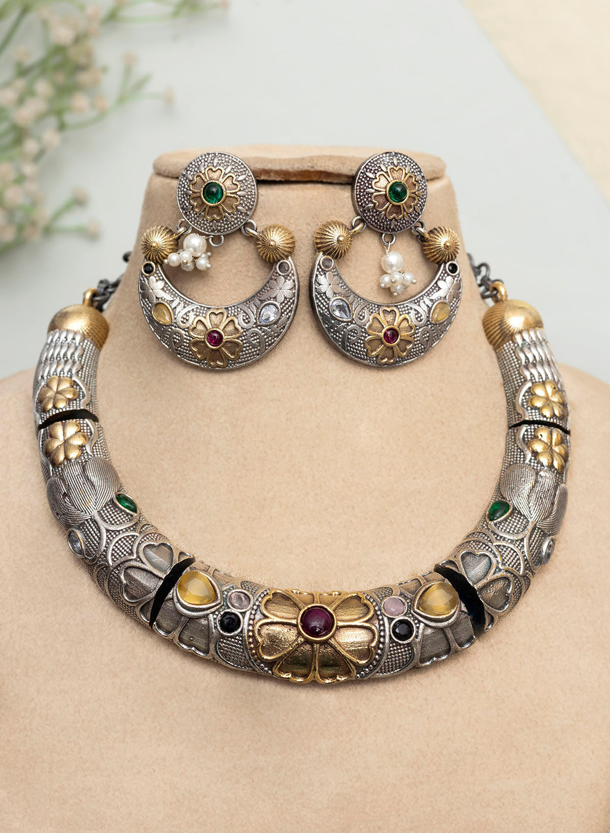 Occasion: Oxidised jewelry refers to pieces that have undergone a chemical process to darken the metal, typically silver, to give it an aged or antique appearance. Oxidised jewelry requires special care to maintain its appearance. it's recommended to store oxidised jewelry in a dry place away from direct sunlight and to avoid exposing it to harsh chemicals or abrasive materials when cleaning.Despite their vintage appearance, oxidised earrings can be remarkably versatile. They can complement a wide range of styles, from bohemian and casual to formal and ethnic, making them suitable for various occasions.