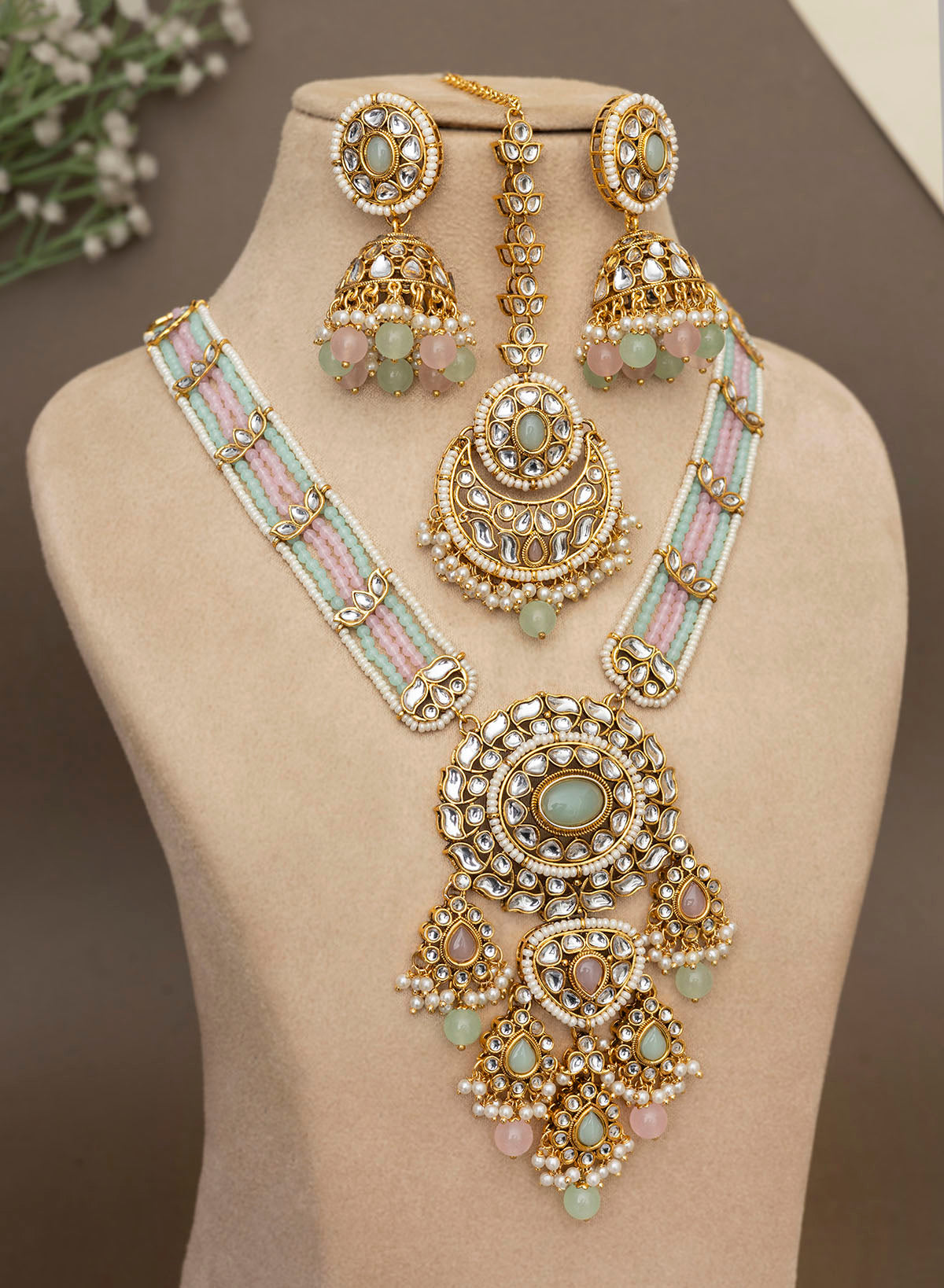 | Measurements | Necklace Length-39cm Necklace Width-6cm Earring Length-7cm Earring width-2.5cm maangtika-20.5cm |