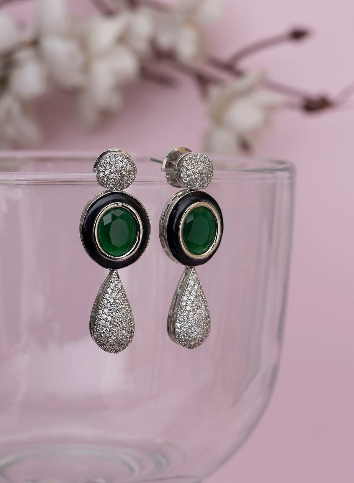 Occasion: Add some beauty and luxury to your jewellery collection with these silver plated doublette american diamond earrings studded with pink blue and green american diamond. These versatile beauties will elevate your traditional as well as western look.