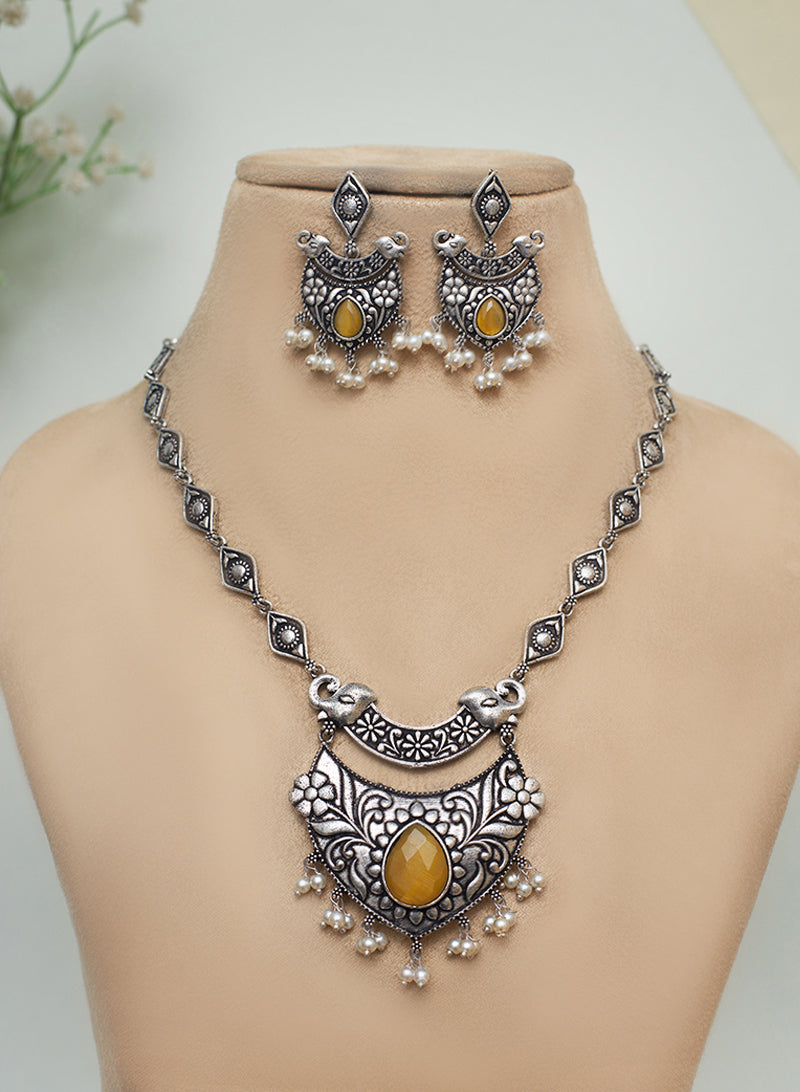 Occasion: Oxidised jewelry refers to pieces that have undergone a chemical process to darken the metal, typically silver, to give it an aged or antique appearance. Oxidised jewelry requires special care to maintain its appearance. it's recommended to store oxidised jewelry in a dry place away from direct sunlight and to avoid exposing it to harsh chemicals or abrasive materials when cleaning.Despite their vintage appearance, oxidised earrings can be remarkably versatile. They can complement a wide range of styles, from bohemian and casual to formal and ethnic, making them suitable for various occasions.