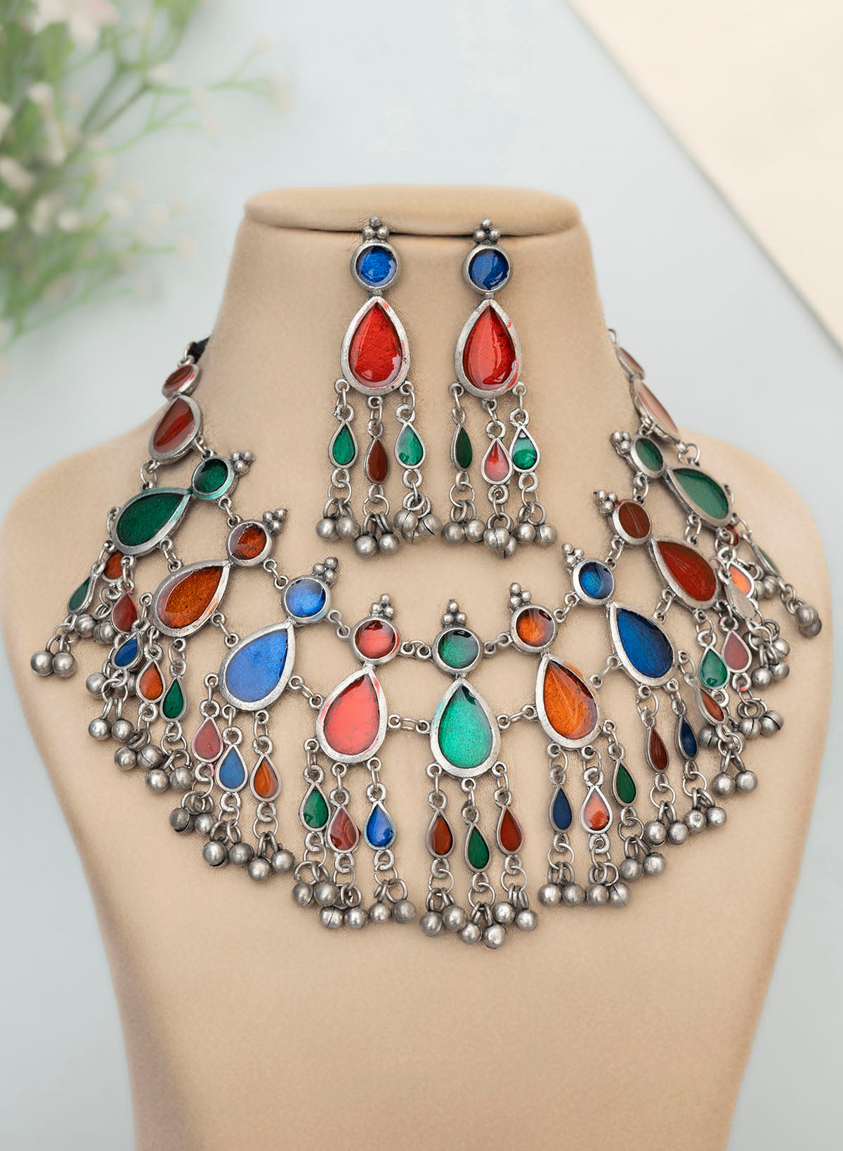 Occasion: Oxidised jewelry refers to pieces that have undergone a chemical process to darken the metal, typically silver, to give it an aged or antique appearance. Oxidised jewelry requires special care to maintain its appearance. it's recommended to store oxidised jewelry in a dry place away from direct sunlight and to avoid exposing it to harsh chemicals or abrasive materials when cleaning.Despite their vintage appearance, oxidised earrings can be remarkably versatile. They can complement a wide range of styles, from bohemian and casual to formal and ethnic, making them suitable for various occasions.