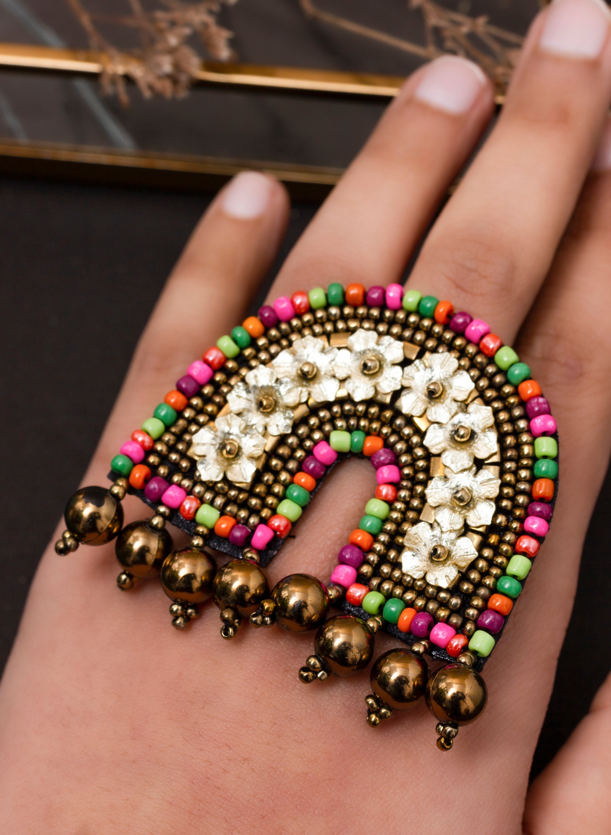 Occasion: This beautifully handmade earrings in mixed materials like beads , resham thread and gota which you can enjoy wearing on your special day on your haldi , mehendi or any high end parties ,wedding or on any festive occasion also can be styled out with indo -western outfit, ethnic outfits ,also can be teamed up with your western styles