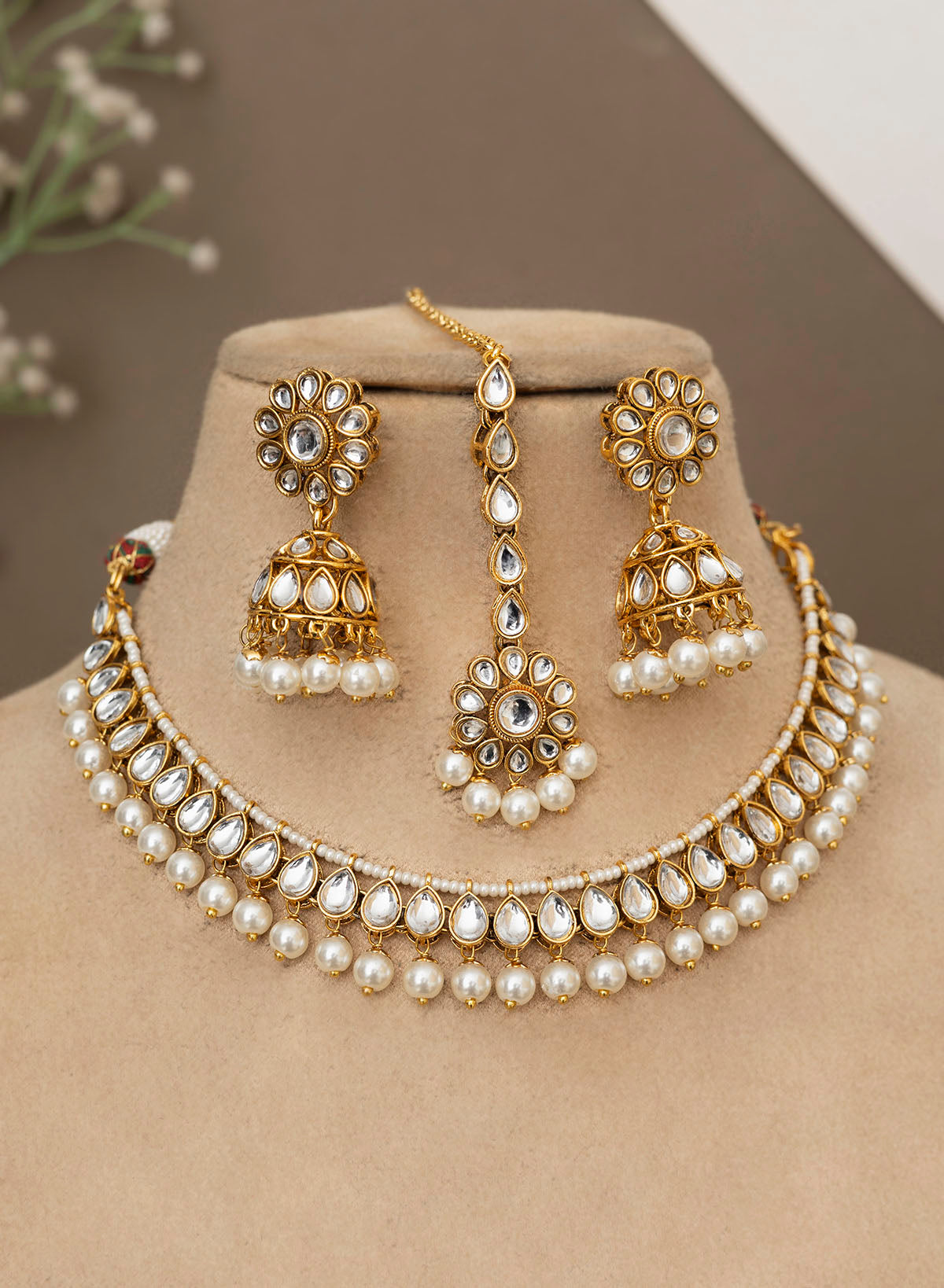 Occasion: Selecting the perfect wedding necklace set involves considering the neckline of your dress, your personal style, and how the pieces will complement your overall look .Add some beauty to your jewellery collection with these gold plated polki stone necklace set .These necklace set will elevate your look on this wedding occasion, sangeet , marriage ,engagement, karwacahuth.