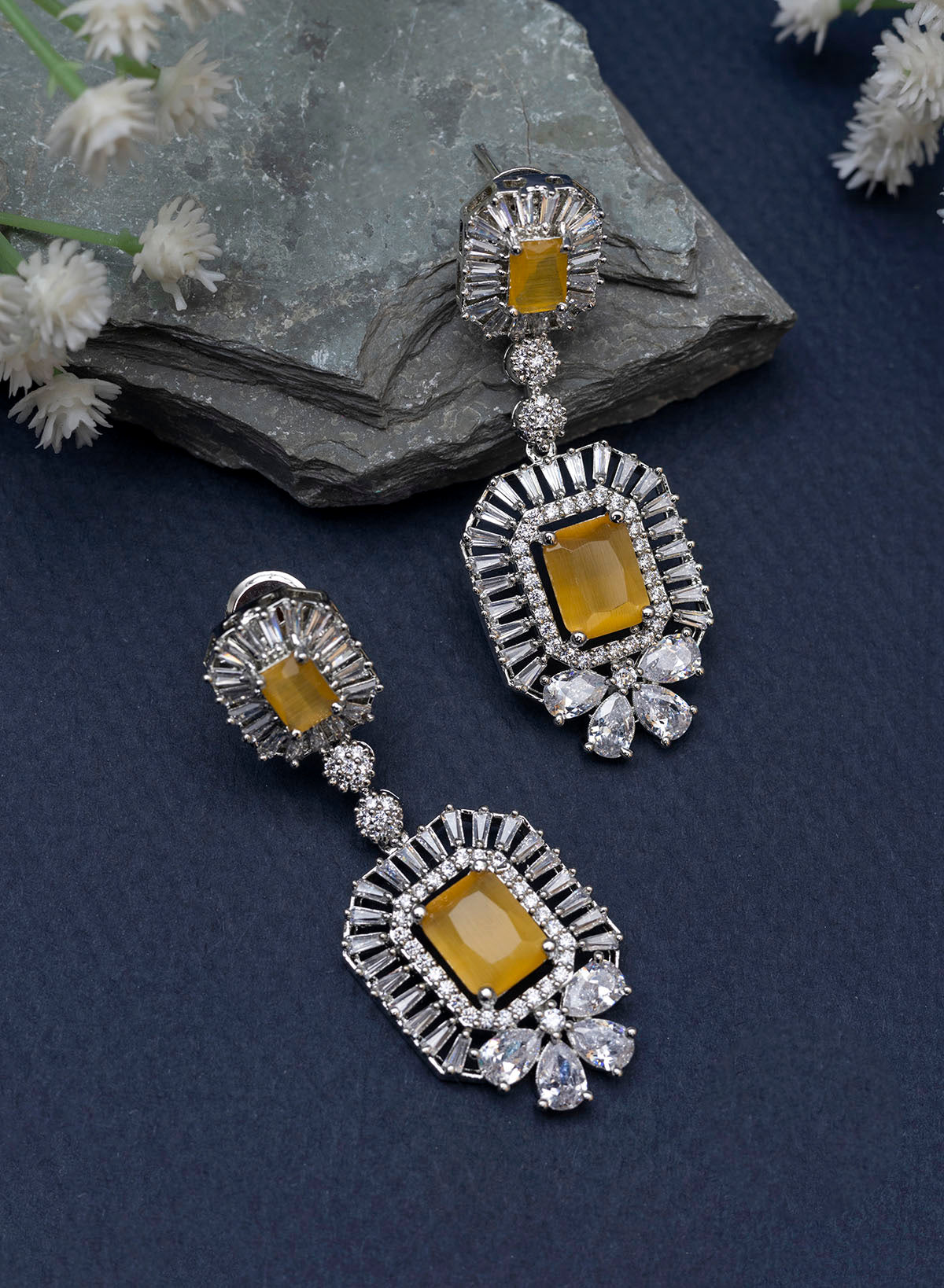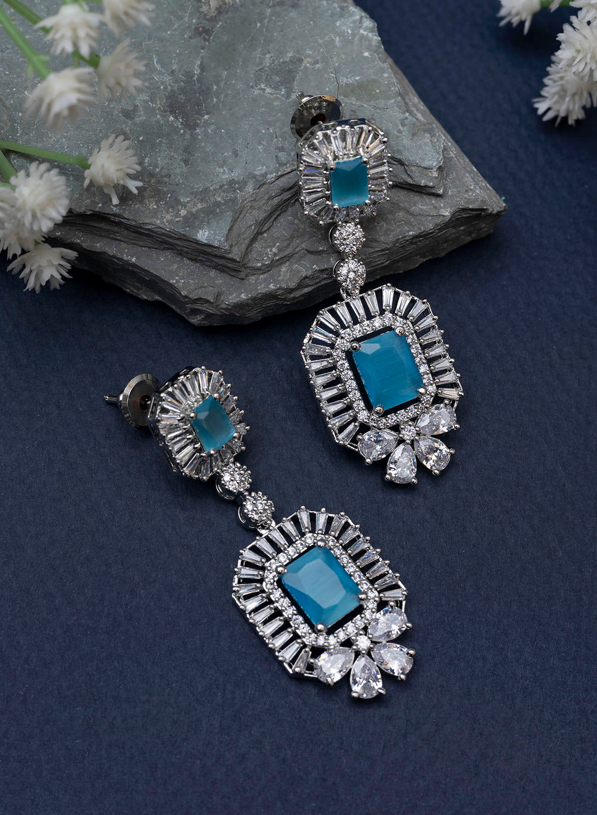 Occasion: Add some beauty and luxury to your jewellery collection with these silver plated american diamond earrings studded with multicolor, blue, white, pastel pink and green american diamond. These versatile beauties will elevate your traditional as well as western look.